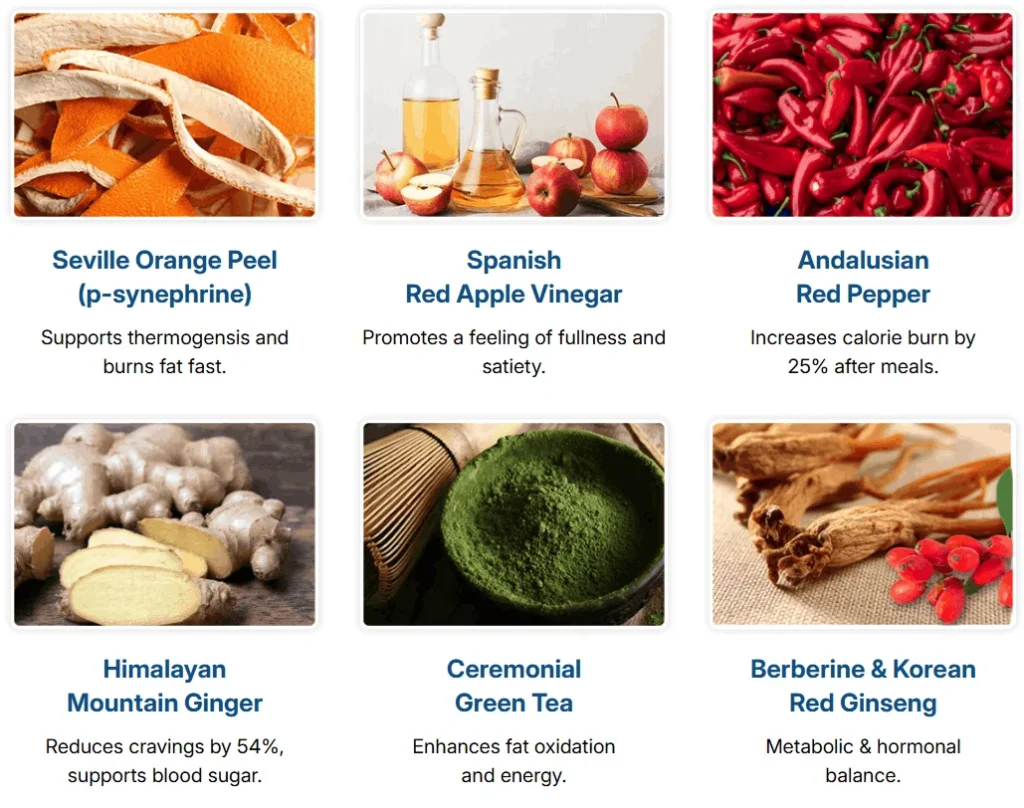 Unlike aggressive stimulant fat burners, the product is positioned as a gentler thermogenic support formula using citrus bioflavonoids, botanical antioxidants, and mild metabolic activators.